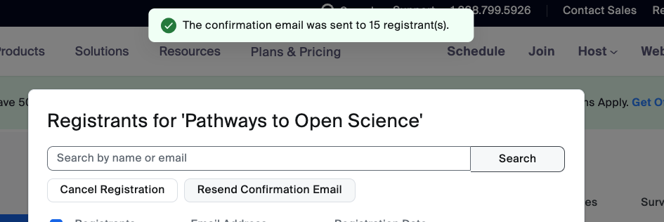 Resend confirmation emails to registrants